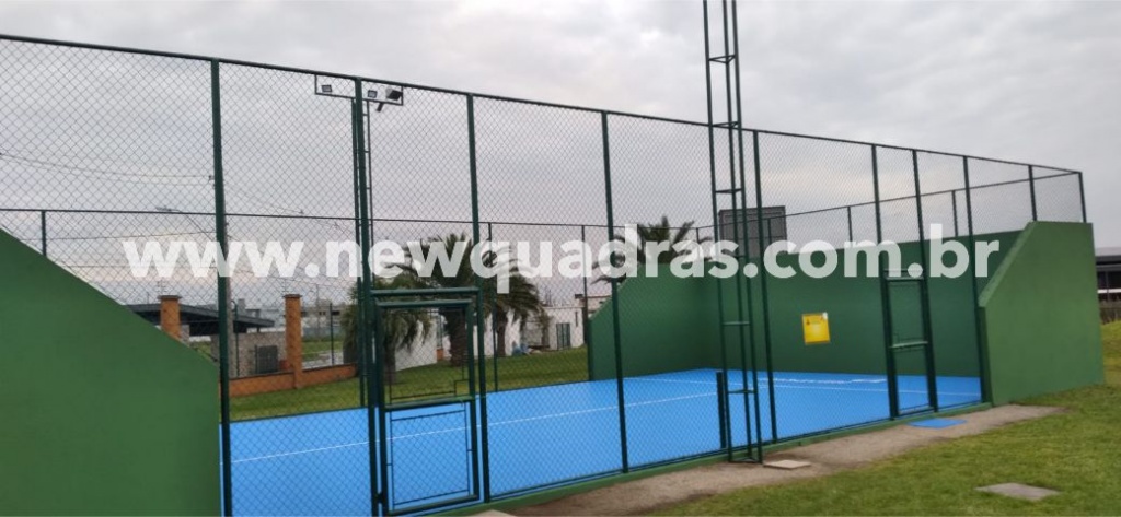 A quadra de padel estava com piso de concreto danificado, trincado e com buracos e o condomínio decidiu por resolver o problema instalando um piso de melhor qualidade e que não gera custos de manutenção.