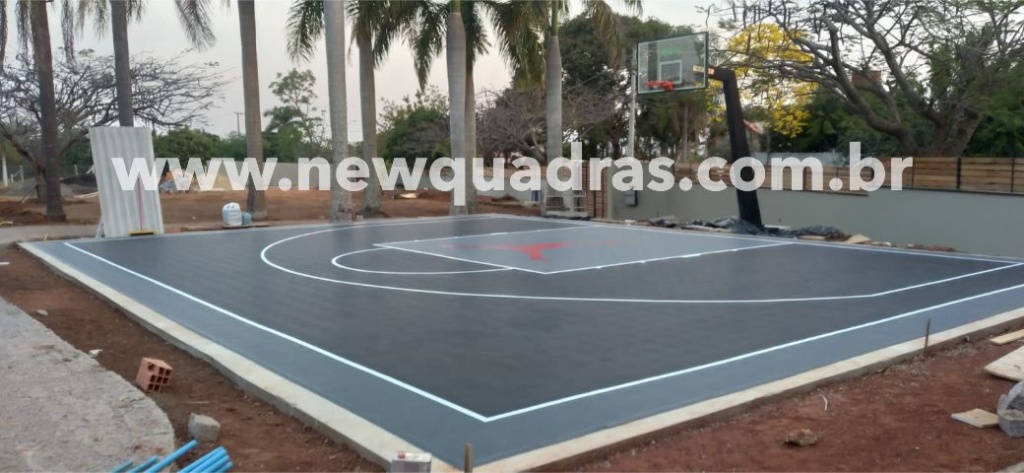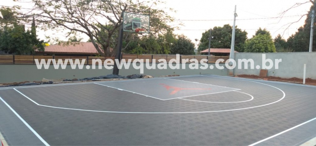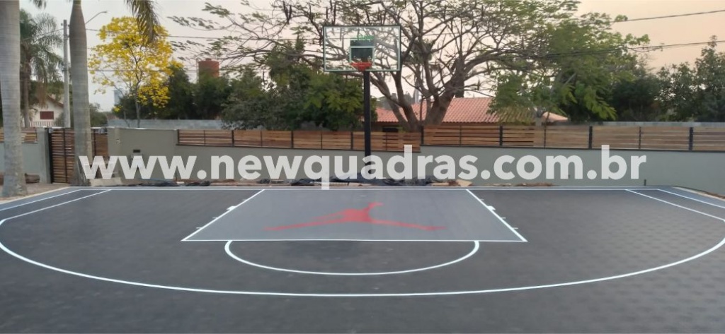 O Proprietário desta residência desejava uma quadra de BASQUETE 3X3 mais moderna do que um piso de cconcreto pintado e optou pelo nosso piso Outdoor que é confortávell, autodrenante, colorido, não tem manutenção, pode ser personalizado com a logomarca escolhida e tem varias opções de cores disponíveis.