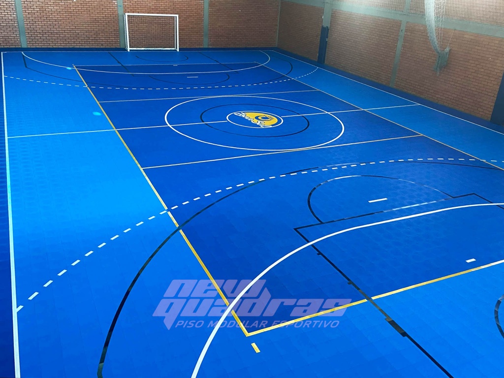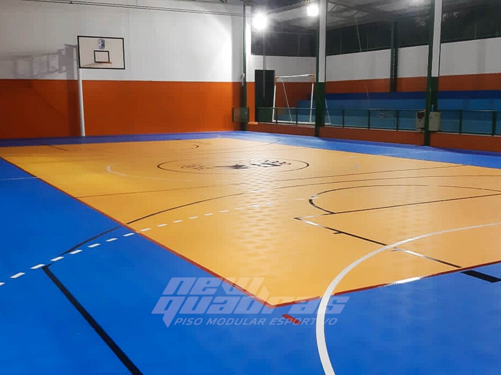 Nosso piso modular esportivo Indoor foi aplicado em uma quadra com base de concreto, com o objetivo de proporcionar conforto, segurança (nosso piso não escorrega) e modernidade.