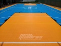 Eles são montados em sistema de encaixe macho e fêma, sem a menor possibilidade de se desmontarem durante a prática esportiva e sem possibilidade de haver desníveis entre eles também.