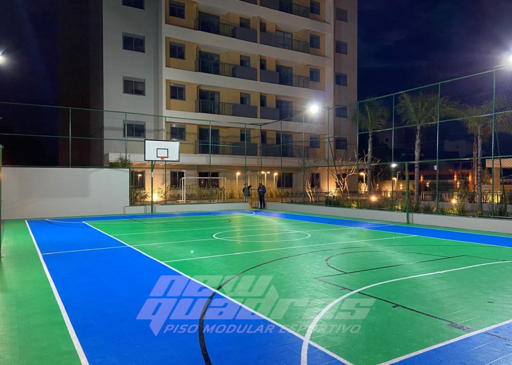 O piso Indoor é instalado em ginásios e o Outdoor em quadras descobertas ou que tenham incidência de chuva.