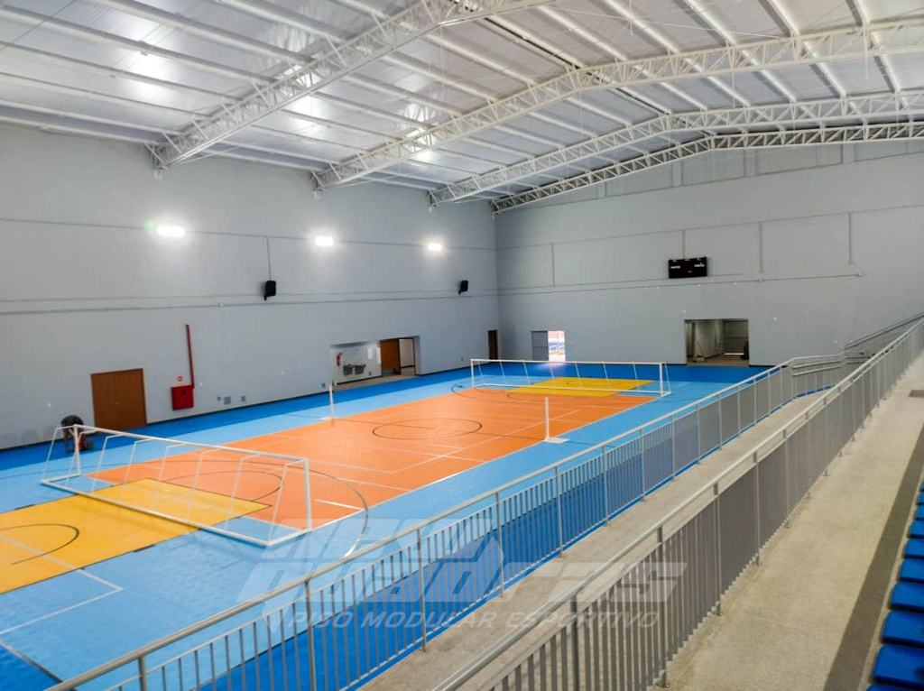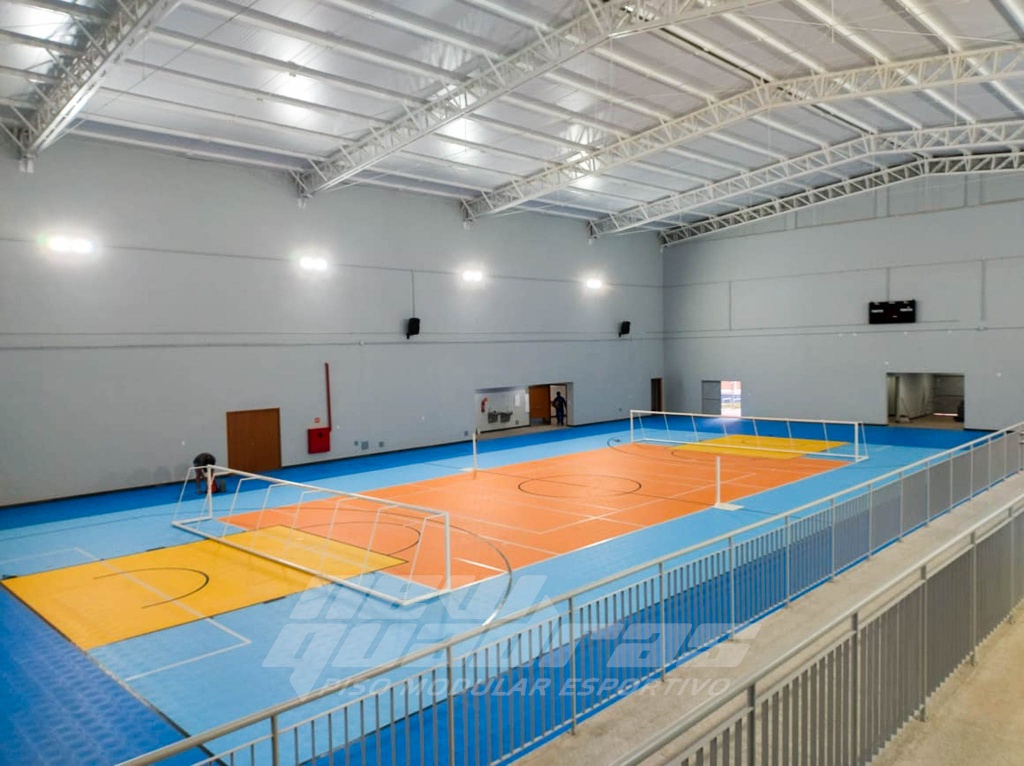 O piso Indoor é instalado em ginásios e o Outdoor em quadras descobertas ou que tenham incidência de chuva.