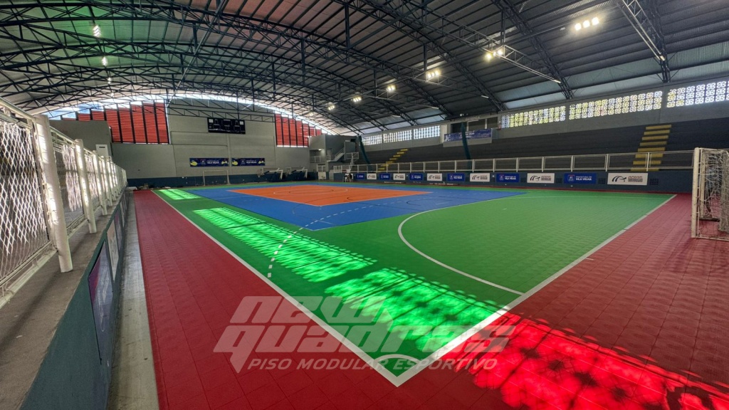 O piso Indoor é instalado em ginásios e o Outdoor em quadras descobertas ou que tenham incidência de chuva.